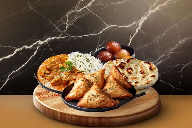 Entrée + accompagnés de riz basmati + dessert — portions généreuses et recettes indiennes authentiques.